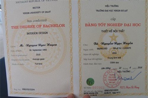 Về những thông tin in thêm trên văn bằng, bà Dung khẳng định không sai, điều này được Thông tư số 19/2015/TT-BGDDT về Quy chế quản lý Bằng tốt nghiệp THCS, THPT; Văn bằng giáo dục Đại học và chứng chỉ của hệ thống giáo dục quốc dân cho phép.