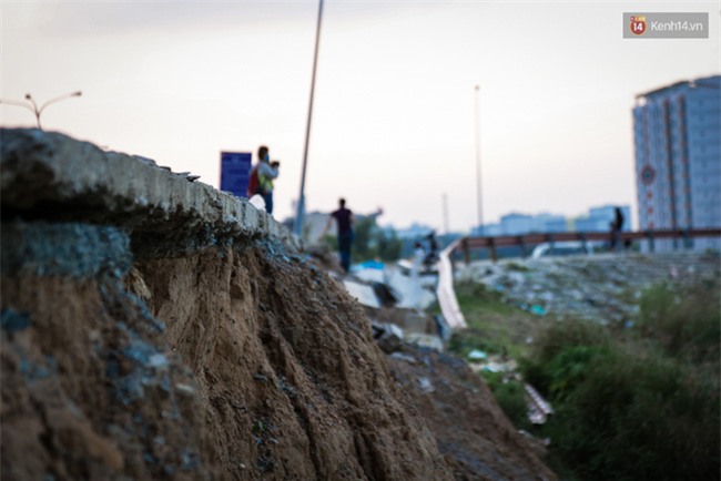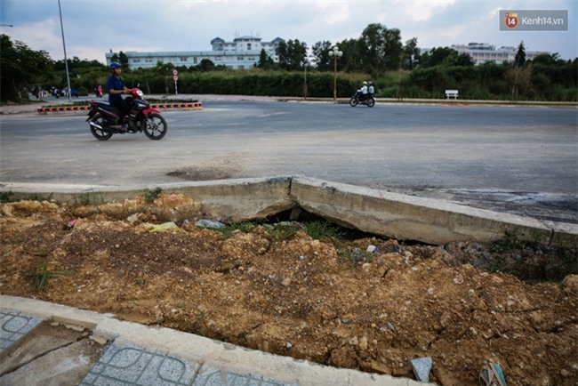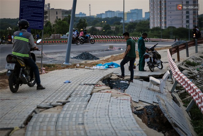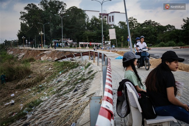 Đây là con đường huyết mạch, nối các con đường nội bộ trong làng ĐH Quốc gia, giúp sinh viên đi lại thuận tiện, tiết kiệm thời gian từ kí túc xá đến trường. Sau khi con đường bị sạt lở nghiêm trọng, đơn vị thi công đã dựng rào chắn để ngăn đi lại nhưng nhiều sinh viên vẫn bất chấp nguy hiểm chạy xe dạo chơi qua khu vực này.