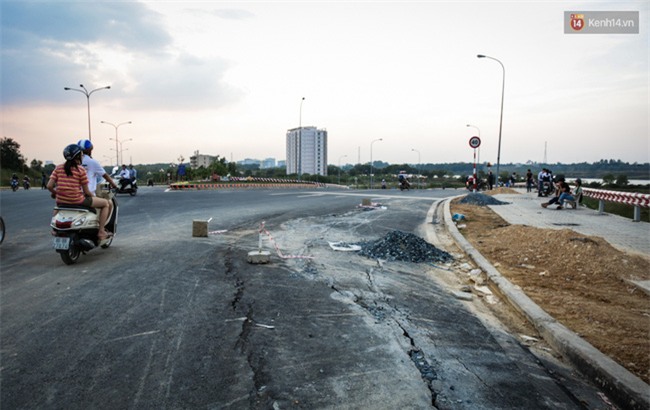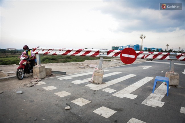Cả đoạn đường huyết mạch nối hai bên bờ bị rào chắn, không cho đi lại nhưng thay vì đi vòng nhiều người vẫn di chuyển qua đây để khỏi mất thời gian.