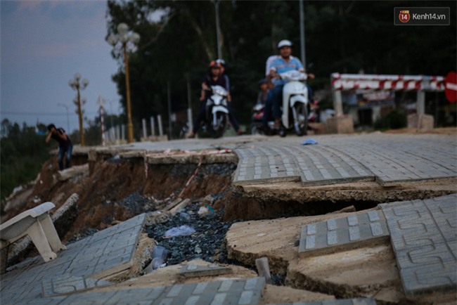 Ngoài ra một phần đường lộ đi qua đây cũng bị sụt lún nghiêm trọng, tạo độ nghiêng nên xe máy qua đây rất dễ bị té ngã.