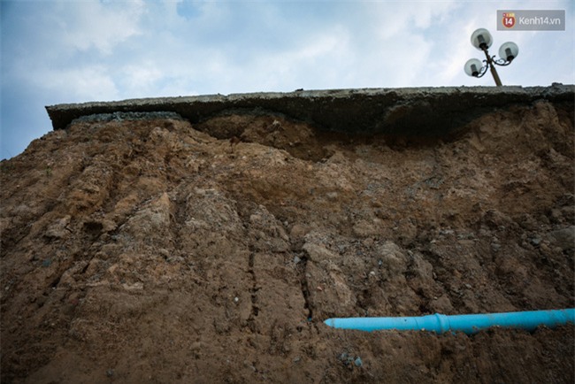 Ống cáp ngầm cũng bị lộ thiên do lớp đất bị sạt lở nghiêm trọng.
