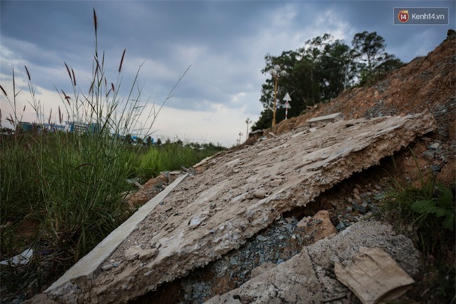 Con đường mới hoàn thành bỗng chốc trở thành đống đổ nát, dải taluy ngăn với lòng hồ Đá bị nước cuốn trôi. Ban quản lý Dự án đô thị ĐH Quốc Gia cho biết, phần bị sạt lở là công trình Trục chính số 6 trạm 2, thuộc Dự án đền bù, giải tỏa tái định cư để xây dựng cơ sở hạ tầng chung.