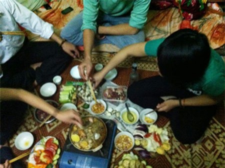 Các sinh viên (trường ĐH Công nghiệp Hà Nội) “nhậu” tại phòng trọ của một nam sinh viên. |