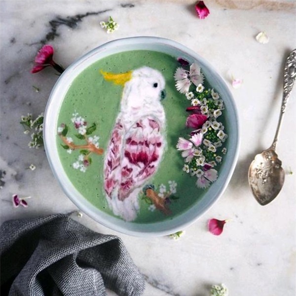 Món ăn được làm từ xoài, táo, sữa hạnh nhân, kem dừa, rau bina, bơ