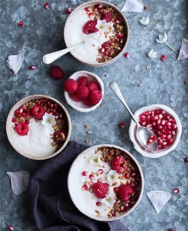 Dâu, lựu, việt quất… là những topping không thể thiếu.