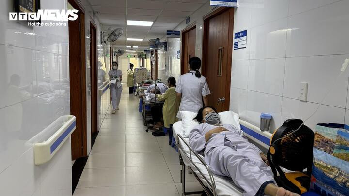 Khoa Nội hô hấp, Bệnh viện Thống Nhất phải kê thêm giường bệnh ngoài hành lang để điều trị bệnh hô hấp. (Ảnh: Như Thuý)