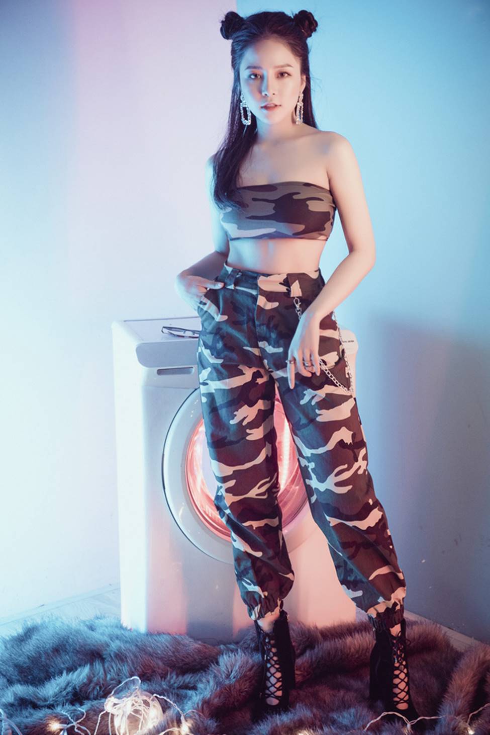 Khác với vẻ đẹp gợi cảm, nóng bỏng thường ngày, Trâm Anh trong bộ ảnh này cá tính và năng động.