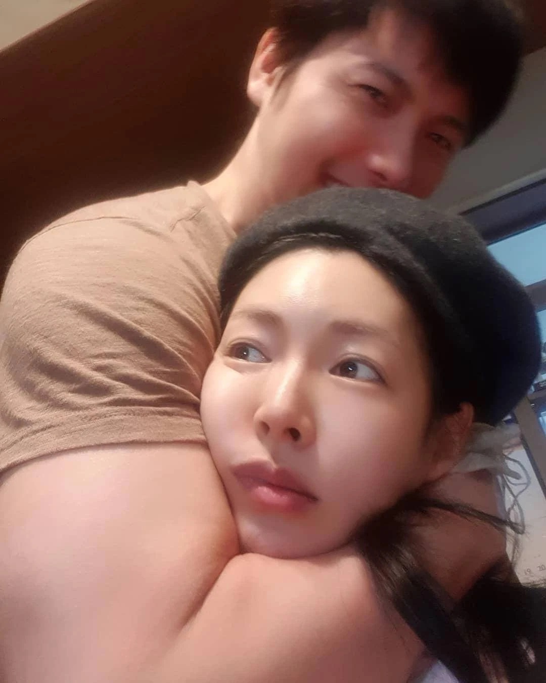 Trong loạt hình được chia sẻ trước đây, ông xã Kim So Yeon thể hiện bản tính "lầy lội" ôm chặt vợ bằng cánh tay đô con lực lưỡng, nữ diễn viên thì thể hiện một gương mặt cam chịu.