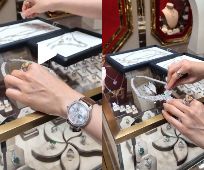 Không hổ danh là tay chơi hàng hiệu, đại gia ngầm Vbiz, mỗi lần shopping, Lệ Quyên đều phải chi trả đến mức tiền tỷ mới chịu. Trước đó, "nữ hoàng phòng trà" cũng thường xuyên gây sốt với những bức ảnh chụp hình tạo dáng khoe kim cương nhiều đến mức bị nhận xét hơi lố.