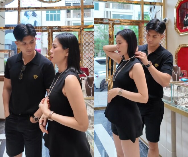 Mới đây, Lệ Quyên được Lâm Bảo Châu đưa đến cửa hàng kim cương để lựa trang sức, chuẩn bị tham dự sự kiện. Suốt buổi thử phụ kiện, nam người mẫu rất tỉ mỉ lựa chọn, chu đáo đeo thử cho bạn gái. Cuối cùng, cả 2 đã lựa chọn 1 bộ trang sức kim cương “siêu to khổng lồ”, với điểm nhấn là viên ngọc lục bảo lớn cực sang trọng.