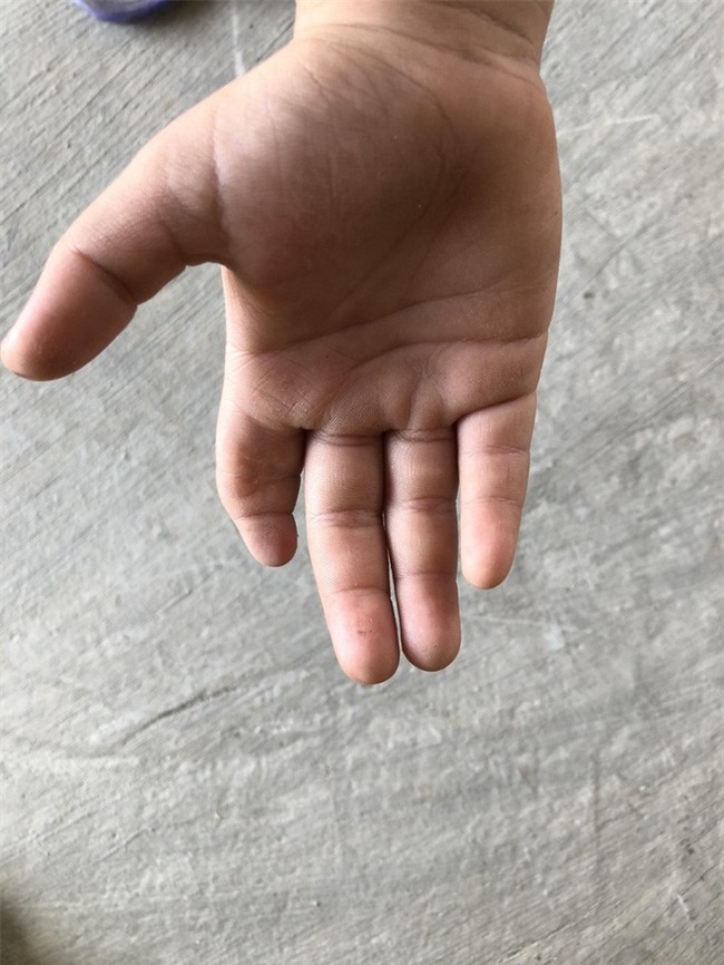 Lên 10 tháng tuổi, bà Hường thấy cháu trai có những biểu hiện bất thường như hay quấy khóc, kém ăn uống. Phía đầu ngón trỏ của bàn tay phải sưng phù.