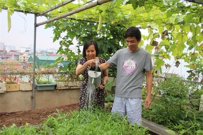 Cách đây 2 năm, chị Hiền (quận Hai Bà Trưng, Hà Nội) bắt đầu trồng rau ở ban công và trên mái tôn để có nguồn thực phẩm sạch cho gia đình. Lúc đầu, anh Khánh, chồng chị, sợ vợ vất vả nên khuyên chị không nên làm.