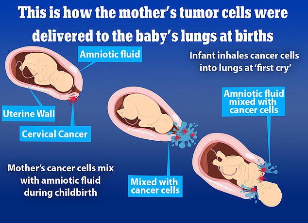 Science Alert trích dẫn phân tích của bác sĩ Arakawa: "Sự lây truyền từ mẹ sang con xảy ra trong ống sinh khi sinh ngả âm đạo. Nếu mẹ bị ung thư cổ tử cung, trẻ sơ sinh có thể tiếp xúc với các tế bào khối u trong chất lỏng nơi ống sinh và hít các tế bào này vào phổi". Trong khi đó, thế giới từng ghi nhận các trường hợp lấy truyền ung thư từ mẹ sang con qua nhau thai, liên quan đến một số dạng ung thư não, xương, gan…