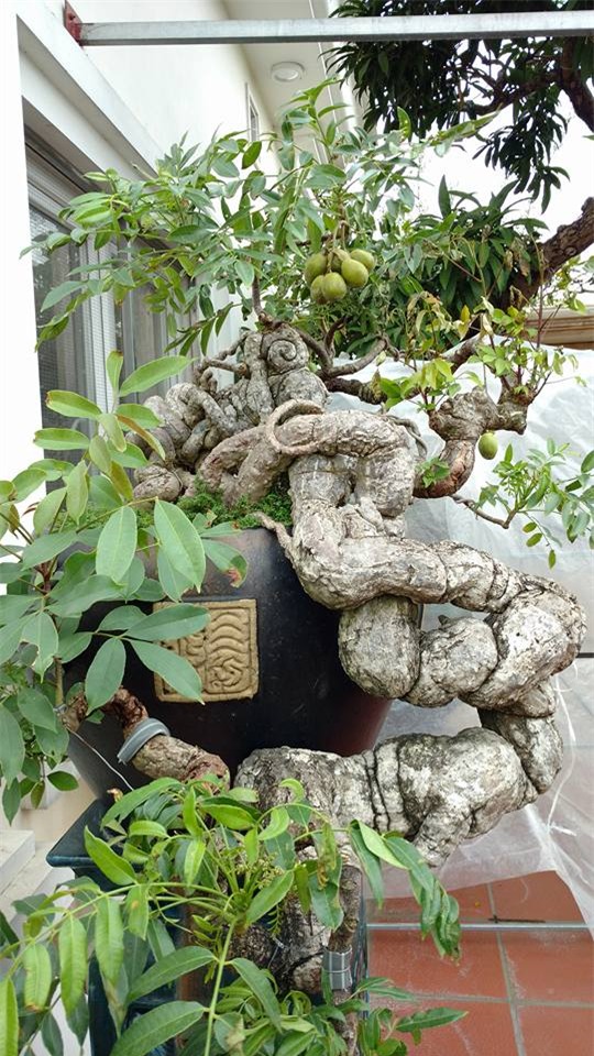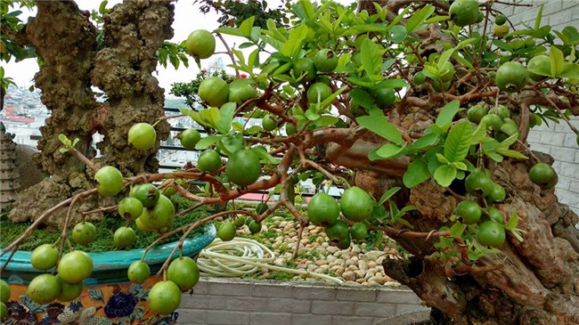 Trước mắt chúng tôi là một cây ổi có đường kính khoảng 60cm, chiều cao của cây khoảng 1,5m, thân cây cao khoảng 1m, với dáng thế “Bạt phong”. Toàn thân nổi lên các nốt sần xù, u, biếu, hốc hác… trông rất cổ kính, đẹp đến ngỡ ngàng. Cây ổi này được trồng trong một cái cậu khá to, kê cao. Trên các cành nhỏ lá vẫn xanh tốt và điểm thêm hàng chục quả ổi xanh, ương, vàng, chín có cả. Cành thì đang đơm nụ, nở hoa, cành thì quả ra chi chít, có quả thì bằng đầu ngón tay út, quả bằng quả nho, quả bằng quả cà pháo, có quả thì bằng cái chén hạt mịt… trông rất đẹp mắt.