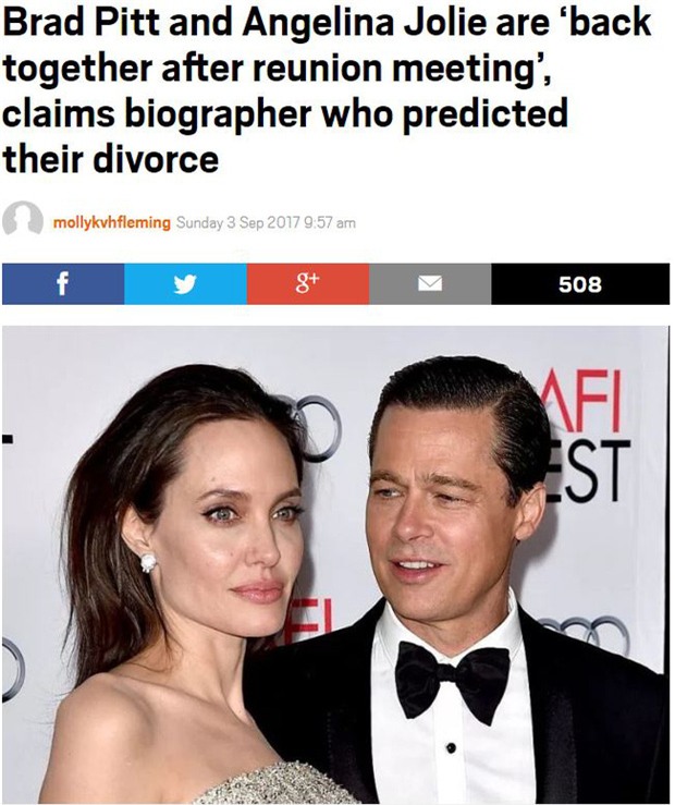 "Brad Pitt và Angelina Jolie đã quay lại với nhau sau cuộc hội ngộ, theo lời nhà văn viết tiểu sử từng dự đoán họ ly hôn"