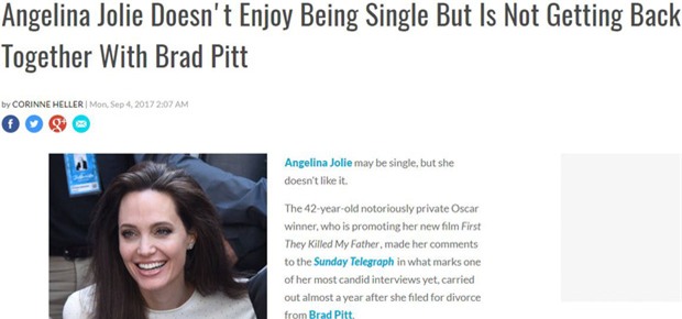 Trang E! News đưa tin: "Angelina Jolie không thích sống độc thân nhưng không quay trở lại với Brad Pitt"