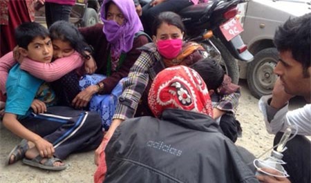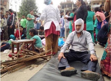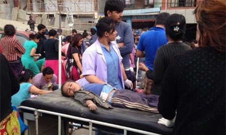 của Nepal. Nhiều người khác nằm dưới sàn đất chờ nhân viên y tế. Tòa
