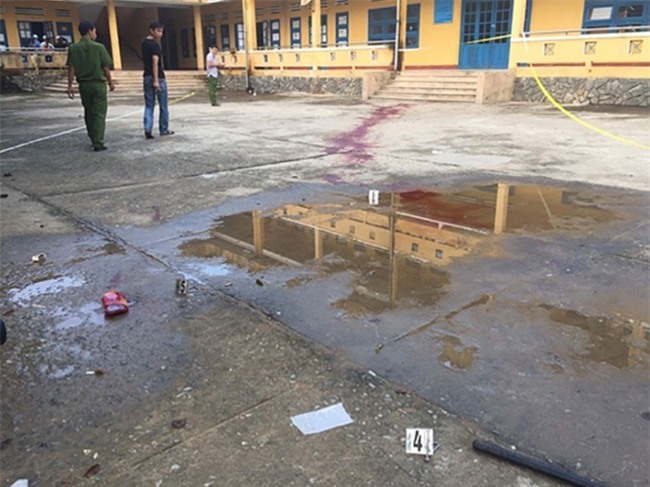 Hiện trường vụ án học sinh truy sát bảo vệ tại Trường THPT Khâm Đức. |