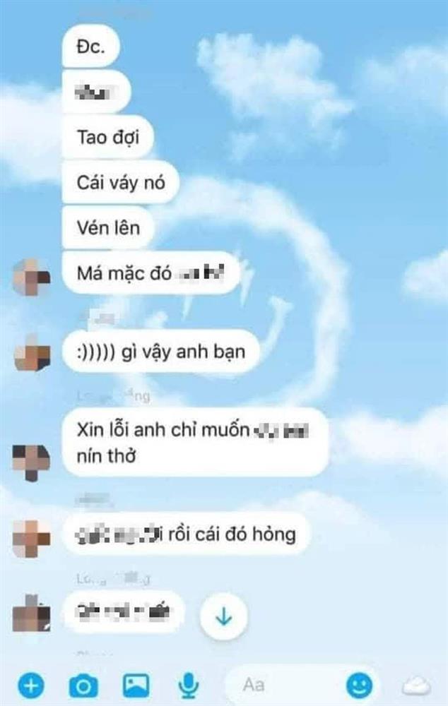 Loạt tin nhắn phản cảm của nhóm nam sinh cấp 3. Nhóm học sinh này liên tục dùng từ ngữ tục tĩu, nói bậy về bộ phận nhạy cảm của nữ sinh.