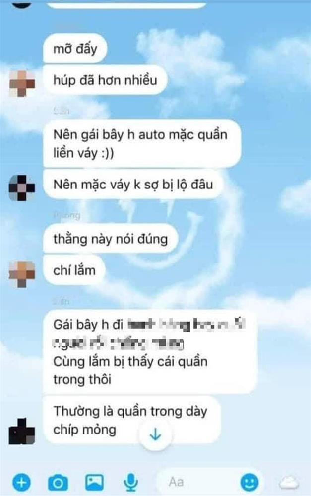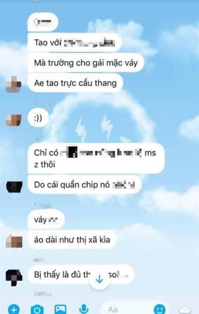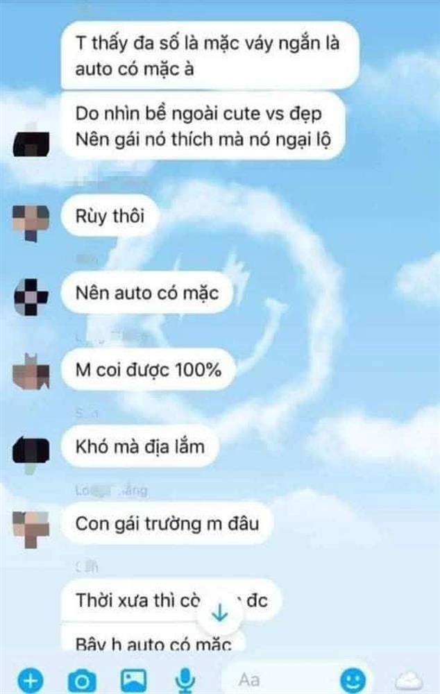 Cụ thể, một số trường học trên địa bàn có đồng phục là mặc váy đi học. Một số nam sinh đã nhắn tin tục tĩu đòi đứng hóng ở các cầu thang, chờ lúc nào có gió thổi thì nữ sinh sẽ bị "lộ hàng". Nhiều người còn liên tục bình phẩm về quần trong của các bạn nữ, bày bí kíp làm sao để soi được chỗ "nhạy cảm" đó.