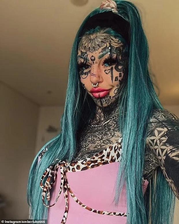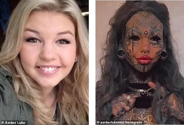 Có thể thấy, trước kia Amber Luke cũn giống như bao người phụ nữ khác, sở hữu gương mặt đầy đặn, làn da trắng sáng. Tuy nhiên, sau khi xăm kín người và dao kéo trông cô như một người hoàn toàn khác.