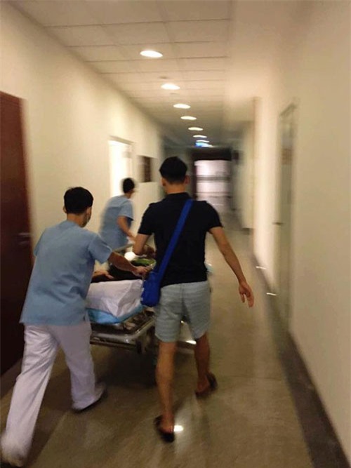 Hình ảnh Quế Vân trên băng ca vào viện được em trai chia sẻ trên facebook |