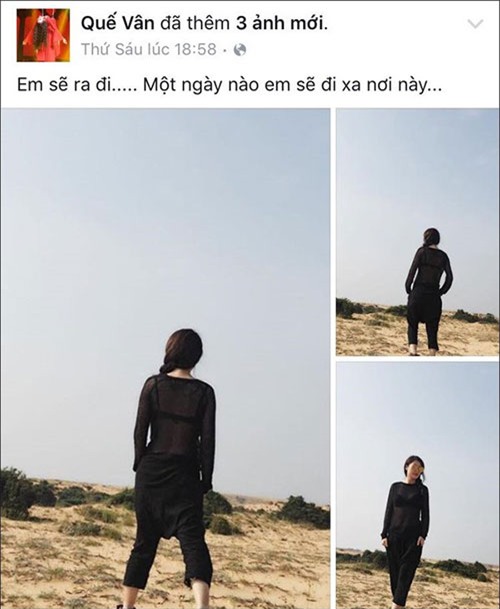 Trước đó, trang cá nhân của Quế Vân thường xuyên đăng tải những dòng tâm trạng buồn bã. Thậm chí, cô còn nói rằng: "Em sẽ ra đi. Một ngày nào đó em sẽ đi xa nơi này". Ảnh đại diện Facebook của Quế Vân cũng được đổi bằng bức ảnh người cô treo lơ lửng giữa không trung, hướng mặt lên trời. Có thể thấy Quế Vân đang phải trải qua khoảng thời gian khó khăn trong cuộc sống.