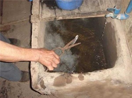 Trước khi cắt tóc, chiếc kẹp được nhúng vào bể nước để giảm bớt độ nóng.