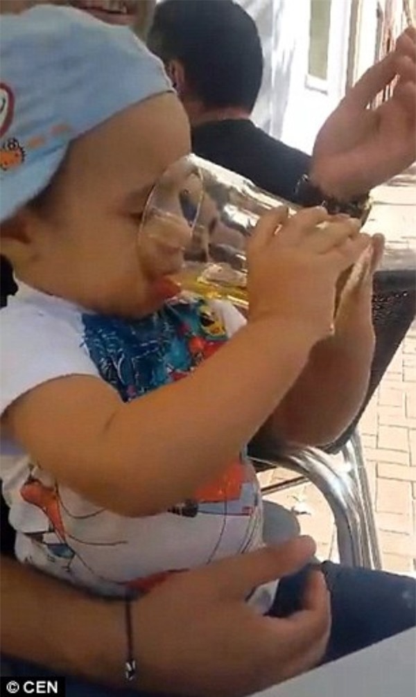 Trong clip, một người đàn ông cho một bé trai mới biết đi ngồi trên đùi và bắt đầu cho em uống bia, rồi chuyển sang hút thuốc lá khiến cư dân mạng phẫn nộ.