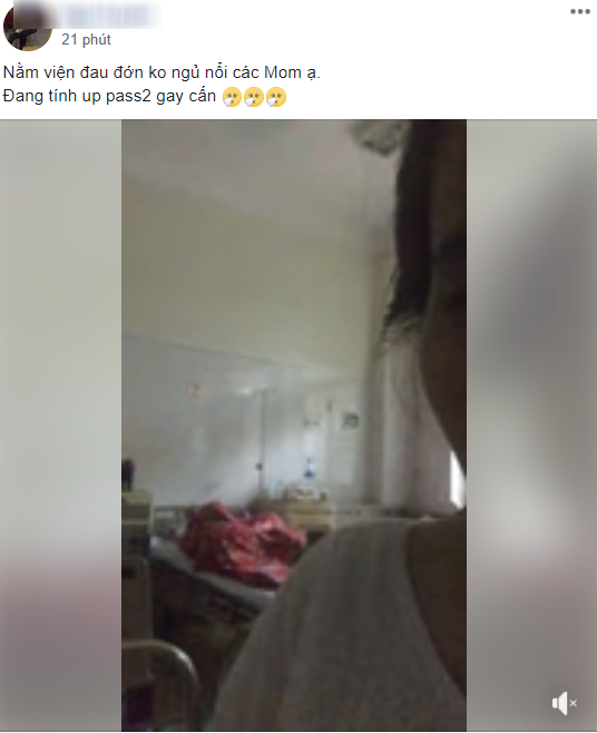 Đi kèm hình ảnh là dòng caption: ''Nằm viện đau đớn không ngủ nổi các mom ạ. Đang tính up thêm phần 2 gay cấn''.