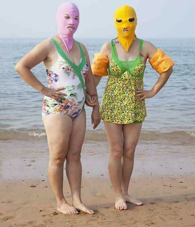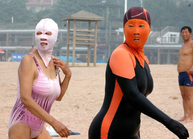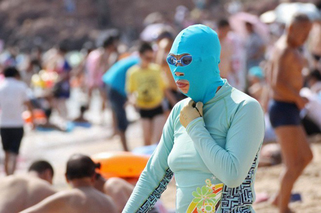 Đi biển sợ ai bắt gặp hay sao mà phải kín mít thế?