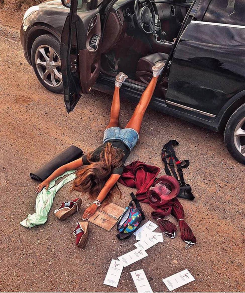 Trào lưu ngã "sấp mặt" cùng siêu xe đang được hội gái xinh xôn xao trên mạng xã hội.