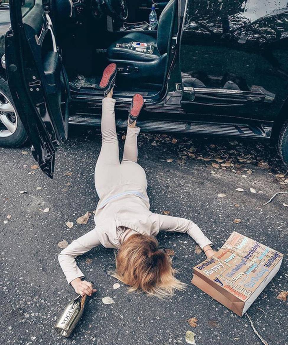 Cô nàng ngã "sấp mặt" khi bước xuống siêu xe.