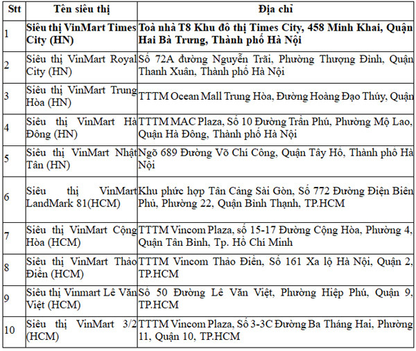 Danh sách 10 siêu thị tổ chức “Tuần lễ hàng hoá Hàn Quốc”: