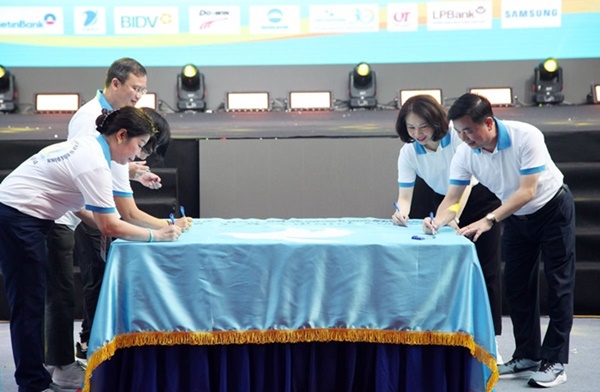 Các đại biểu ký cờ hòa bình