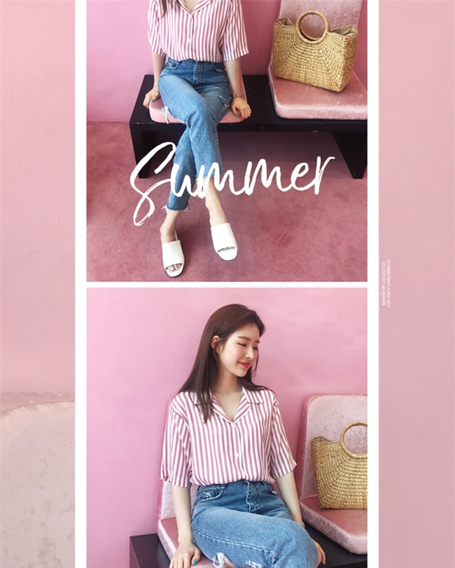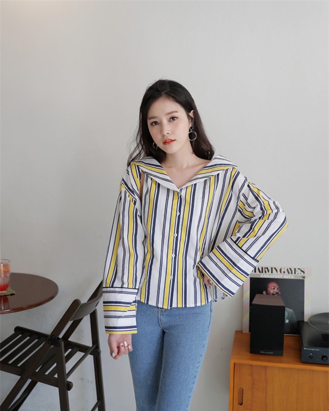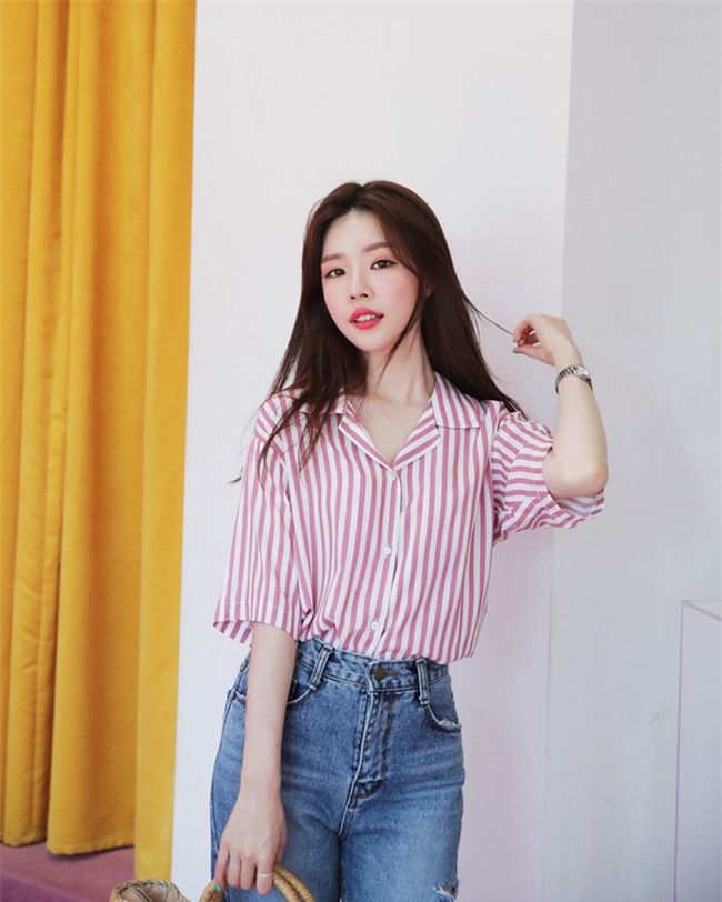 Năm nay còn là sự lên ngôi của kiểu áo sơmi kẻ sọc với dáng cổ giống kiểu áo pijama, thiết kế này không chỉ dễ mặc, dễ kết hợp mà còn rất trendy nữa. Bạn có thể kết hợp cùng quần jeans...