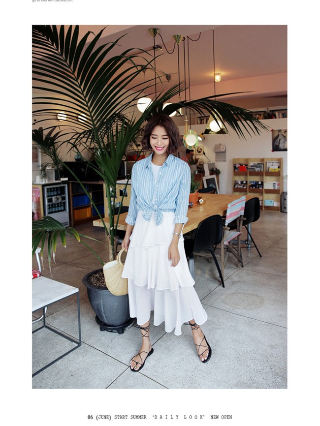 Ngoài ra còn một số cách biến tấu rất mùa hè với chiếc sơmi kẻ sọc này, bạn có thể chọn cách buộc vạt...