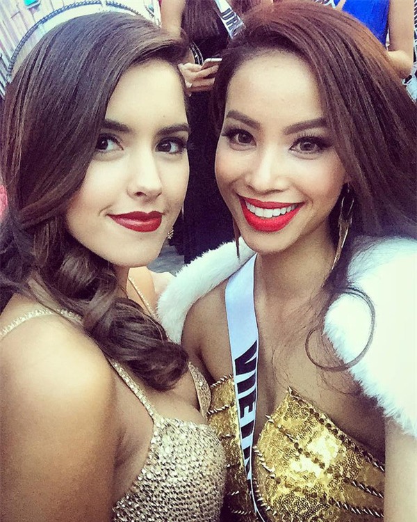Khi đọ sắc cùng các Hoa hậu khác Phạm Hương chẳng hề kém cạnh, thậm chí là có phần nổi bật hơn.