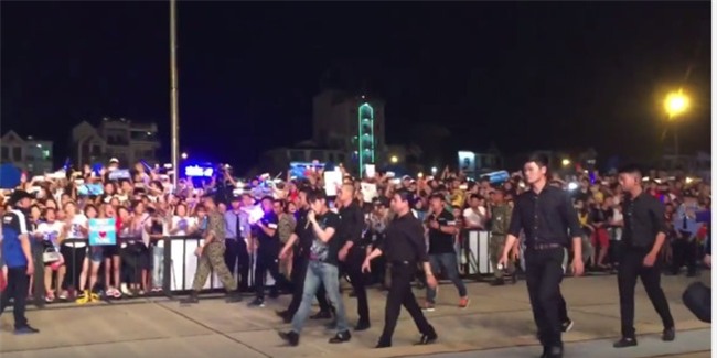 Ngay khi đó, dàn vệ sĩ đã phải có mặt để hỗ trợ Sơn Tùng M-TP tránh xảy ra sự cố khác. Bản thân nam ca sĩ cũng giật mình, anh nói: “Ồ, thế này là không được” và vội quay trở lại phía sân khấu.