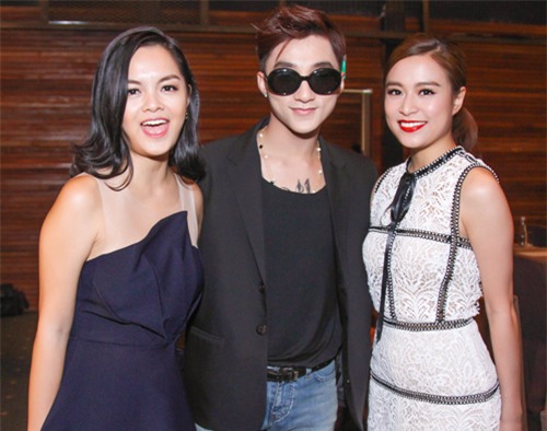 Nam ca sỹ bảnh bao tạo dáng bên đàn chị Phạm Quỳnh Anh và Hoàng Thùy Linh .