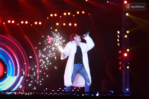 Sơn Tùng khoác áo lông trắng thay vì diện chiếc áo lông đỏ đã gây nhiều bàn tán trong liveshow tại Sài Gòn