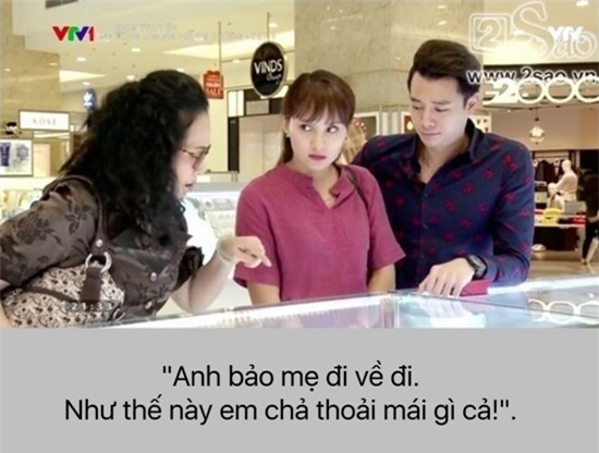 Rồi cả việc đi mua nhẫn cưới cũng vậy. Khi thấy bà Phương đi theo, Vân đã thẳng thừng nói với Thanh rằng: "Anh bảo mẹ đi về đi. Như thế này em chả thoải mái gì cả".