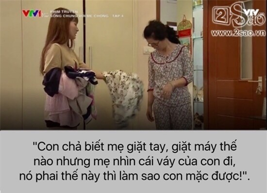 Sau vài tập phim, người xem còn cho rằng, Vân rất sung sướng so với nhiều người khác khi từ hồi về làm dâu, cô chưa phải động tay động chân làm gì. Kể cả việc mang quần áo đi giặt cũng là một tay bà Phương lo. Thế mà chỉ vì mẹ chồng vô ý làm cái váy của mình phai màu, cô đã tỏ thái độ khó chịu: "Con chả biết mẹ giặt tay, giặt máy thế nào nhưng mẹ nhìn cái váy của con đi, nó phai thế này thì làm sao con mặc được!".