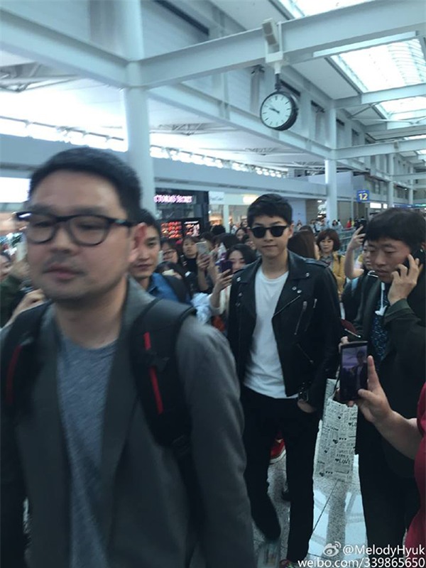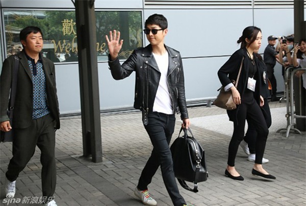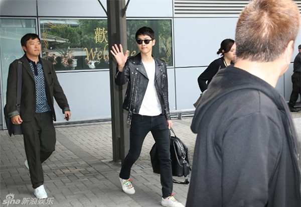 Hai diễn viên chính của bộ phim "Hậu duệ mặt trời" đã cùng đến Hong Kong sáng nay để tuyên truyền cho bộ phim nhưng mỗi người đi một hướng khác nhau để tránh gây náo loạn tại sân bay.