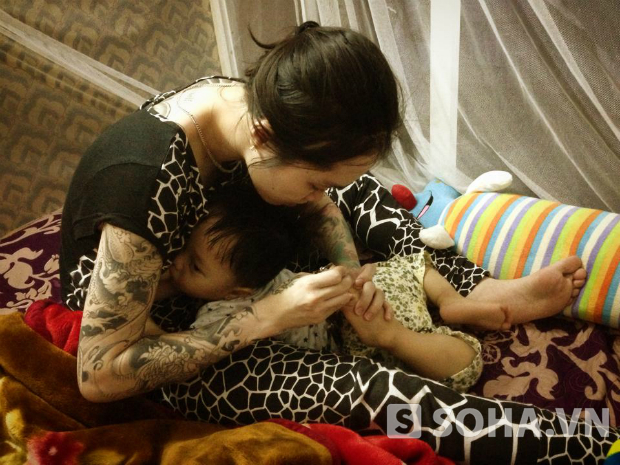 Nguyễn Ngọc Anh (Na Bia) một lần nữa khiến cộng đồng mạng phải nhắc tới cô với hình ảnh đầy ấn tượng của một bà mẹ xăm kín người ân cần chăm con.