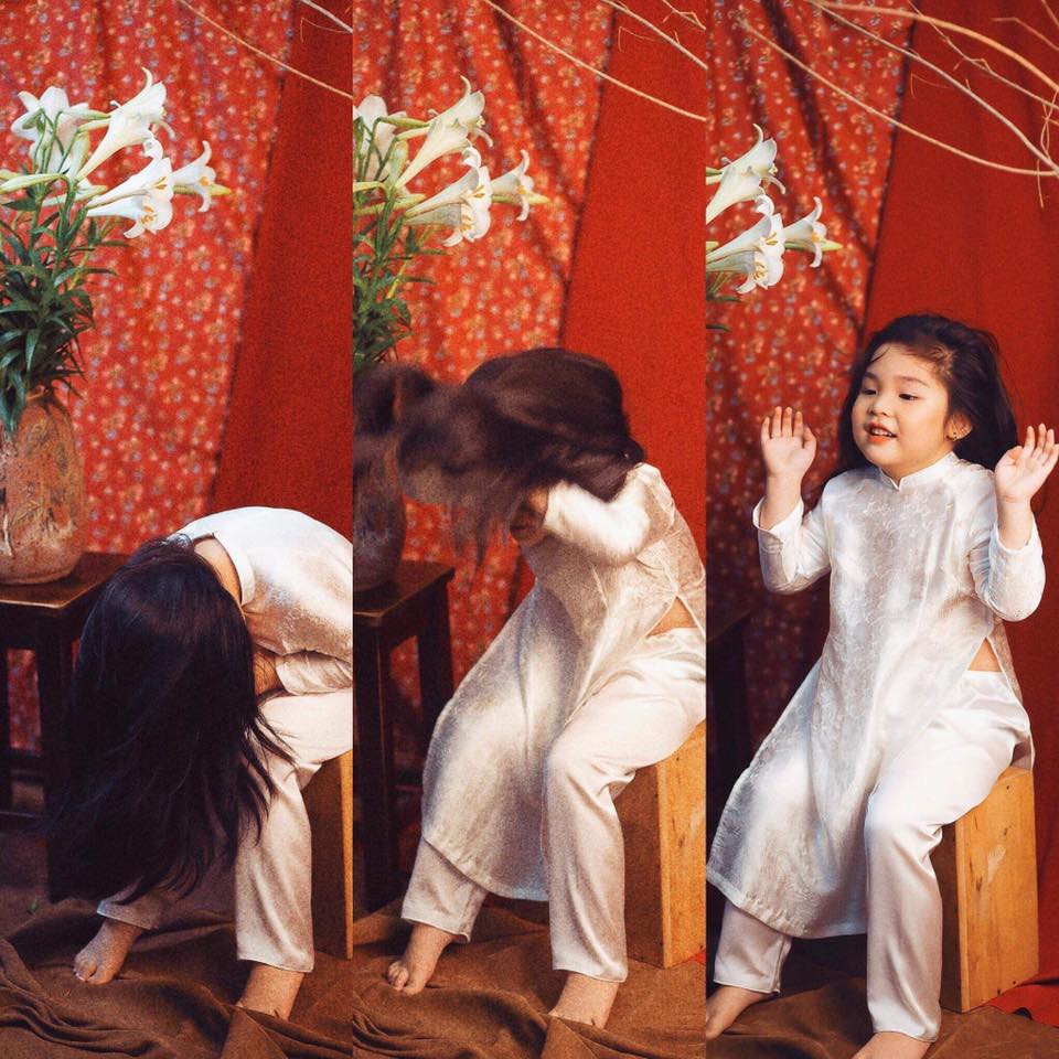 Rõ ràng concept "thiếu nữ bên hoa huệ" thì cần có sự dịu dàng, nữ tính nhưng theo hình ảnh được chia sẻ thì cô bé này hoàn toàn trái ngược. Dù cũng mặc áo dài trắng, trang điểm xinh đẹp nhưng kết quả thì là những cú hất tóc, trèo ghế… đầy cá tính. Đương nhiên, chứng kiến cảnh tượng cô con gái cưng phá hỏng ý định ban đầu, mẹ trẻ chỉ muốn "khóc ròng", còn dân mạng xem xong thì chỉ biết cười lăn cười bò.