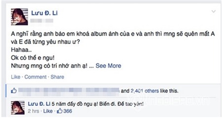 Khi hình ảnh Huyền My và bạn trai đang sốt sình sịch trên mạng, ngay lập tức hotgirl chia sẻ sự uất ức cho “tình yêu 5 năm – tuổi thanh xuân của mình” : “Anh nghĩ rằng anh bảo em khoá album ảnh của em và anh thì mọi người sẽ quên mất anh và em đã từng yêu nhau ư? Ok có thể e ngu! Nhưng mọi người có trí nhớ anh ạ!". Tuy nhiên, dòng trạng thái đã được gỡ bỏ khỏi trang cá nhân sau vài giờ cập nhật.