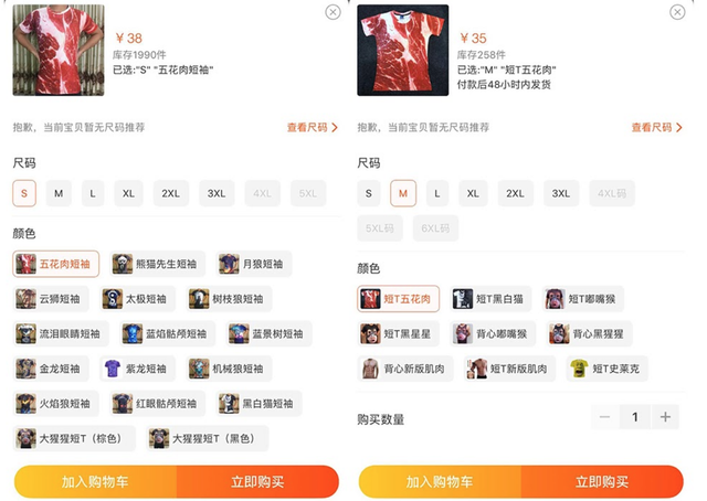 Chiếc áo in hình thịt lợn có nguồn gốc từ Trung Quốc và được chào bán phổ biến trên Taobao