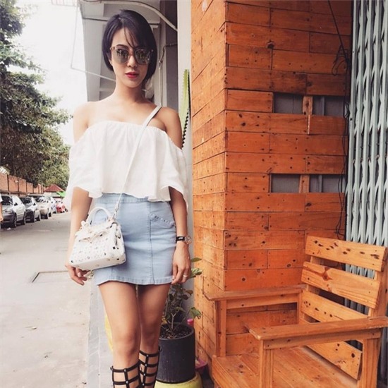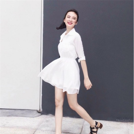 Tuần qua, Angela Phương Trinh sử dụng những gam màu nhẹ nhàng ra phố. Chân váy hồng nhạt kết hợp với áo sơ mi khiến cô xinh xắn như tiểu thư. Thêm chiếc kính mắt mèo, túi xách nhỏ nhắn, bông tai dài tạo nên cho cô vẻ ngoài hoàn hào, ấn tượng.
