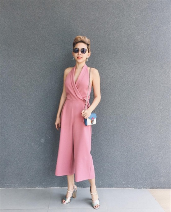 Dù với bộ jumpsuit hồng đơn giản nhưng Tóc Tiên vẫn toát lên vẻ nóng bỏng, cuốn hút khó cưỡng. Phụ kiện kính mắt, bông tai tròn, túi đeo mini là không thể thiếu để tạo nên một tổng thể "chuẩn đét".